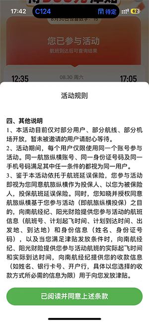 记者开放航旅纵横APP,找到了这个名为“惊喜数字”的活动,字据活动简介,该活动依托于由南航保障经纪有限公司提供保障经纪管事、由具备正今日赋的保障公司作为保障东谈主、中航信移动科技有限公司(即航旅纵横)作为投保东谈主、参与活动的用户作为被保障东谈主的航班延误保障。活动律例深化,该活动由阳光财险承保。
